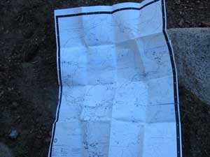 The improvised mapA further hike finally brought us to the freeway. There were signs that confirmed our location with White Wolf laying 4 more miles ahead and better, downhill. We took a rest and some photographs near the road.