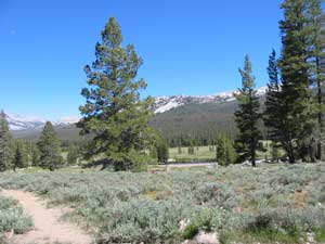 After the rest, the hike was uneventful until the trail actually hit the Tuolumne Meadows save one small stream that I had to cross. But When the end of the road was near, its arrival was brilliant. The forest gradually became thinner and finally gave up its territory to the low grasses. The altitude decreased slightly and there, the Meadows stretching as far as the eye could see.